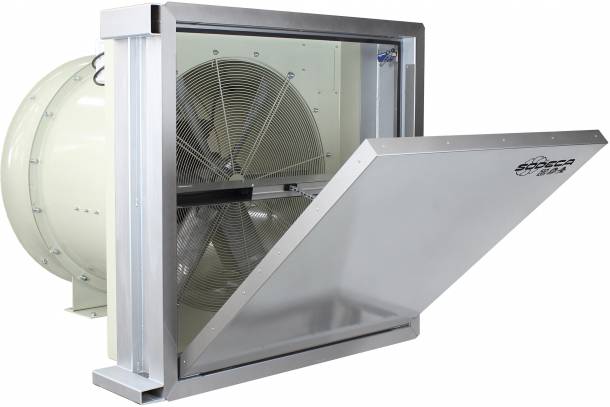 Axial-Rohrventilator mit motorbetriebener Klappe und Wärmeisolierung